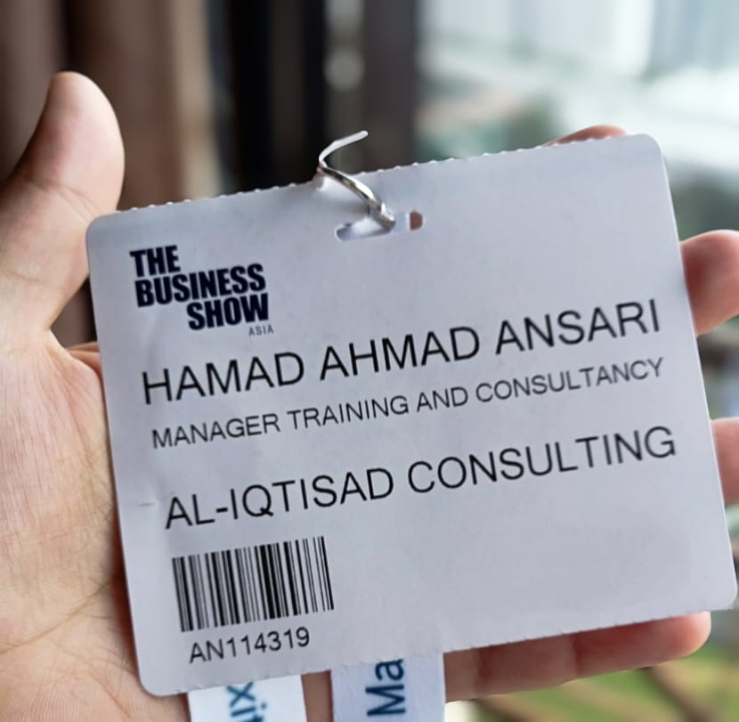 Hamad Ahmad Ansari, Manager Training and Consultancy, represented Al-Iqtisad Consulting as a Delegate in " The Business Show Asia 2025" on 27-28 August 2025. This was Asia's leading business event for entrepreneurs and SMEs, at the Sands Expo & Convention Centre in Singapore, offering masterclasses, networking, and insights on AI, e-commerce, finance, and scaling businesses.
